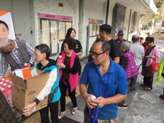 我們於田興邨派發由瑪莎捐贈的乳酪,蔬菜和麵包給附近的邨民。